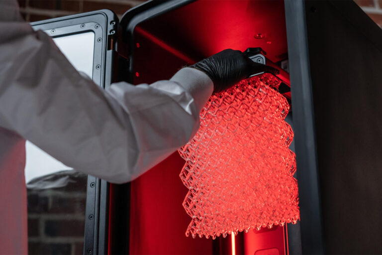 Programmable photopolymerization P3™ is a 3D printing technology for batch production. In this process, the material is gradually layered and cured using a high-resolution display. Thanks to this technology, you will achieve top precision, high-quality details, smooth surfaces and increased production capacity. In addition, the control of pressure, temperature and separation force during printing ensures that the first and last parts of the series are mechanically and geometrically identical. The parts can gain heat resistance up to 300 °C after tempering in an oven, which is why they are often used in the aerospace industry.